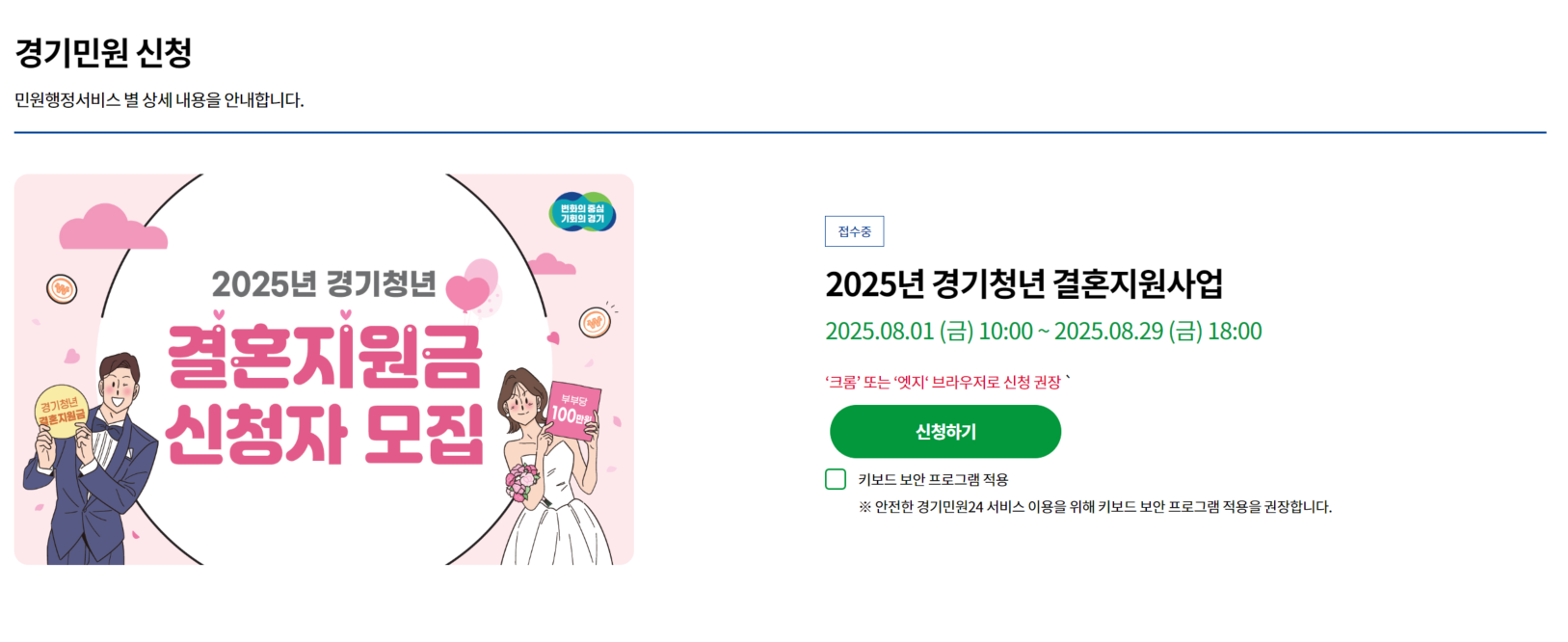 - 📌 지원명: 2025년 경기청년 결혼지원사업